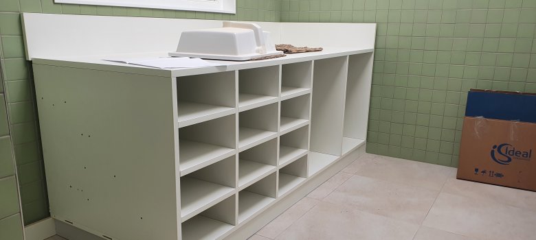 Einbau von jeweils 8 Oberschränken im Garderobenbereich der 6 Gruppen