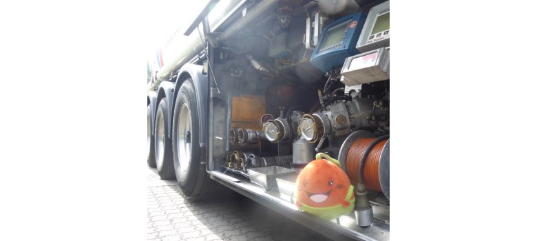 Dabei gibt es soooo viel zu beachten. Man muss wissen wie genau die gefährlichen Stoffe verpackt werden müssen und welche Gefahrensymbole auf ein Paket oder ein Fass drauf müssen. Transportiert wird zum Beispiel Benzin, was ja sehr schnell brennen kann und deshalb ein Gefahrgut ist.