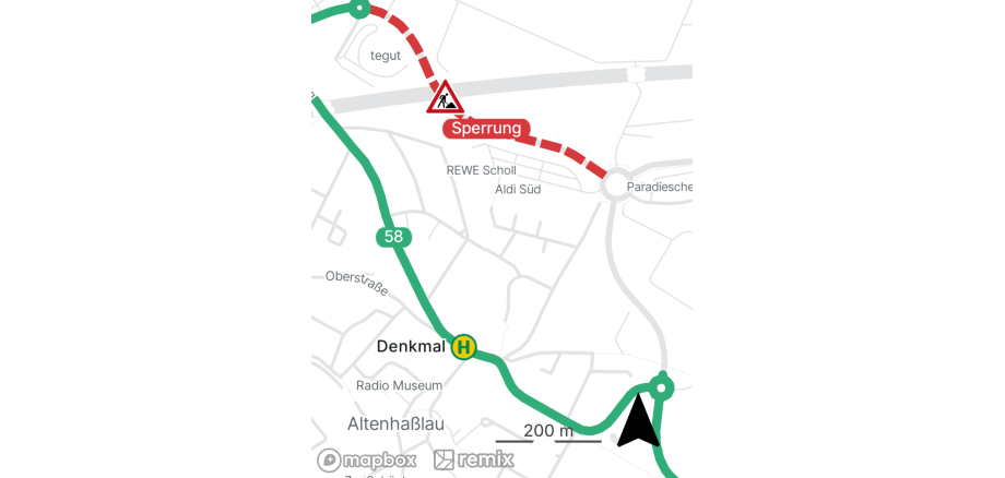 Fahrgäste werden gebeten, auf die Haltestelle „Denkmal“ auszuweichen.